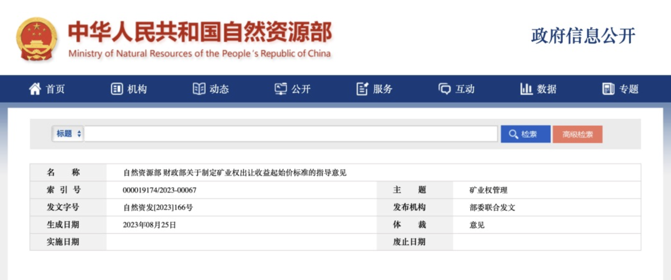 重要文件!礦業(yè)權(quán)出讓收益起始價標準發(fā)布